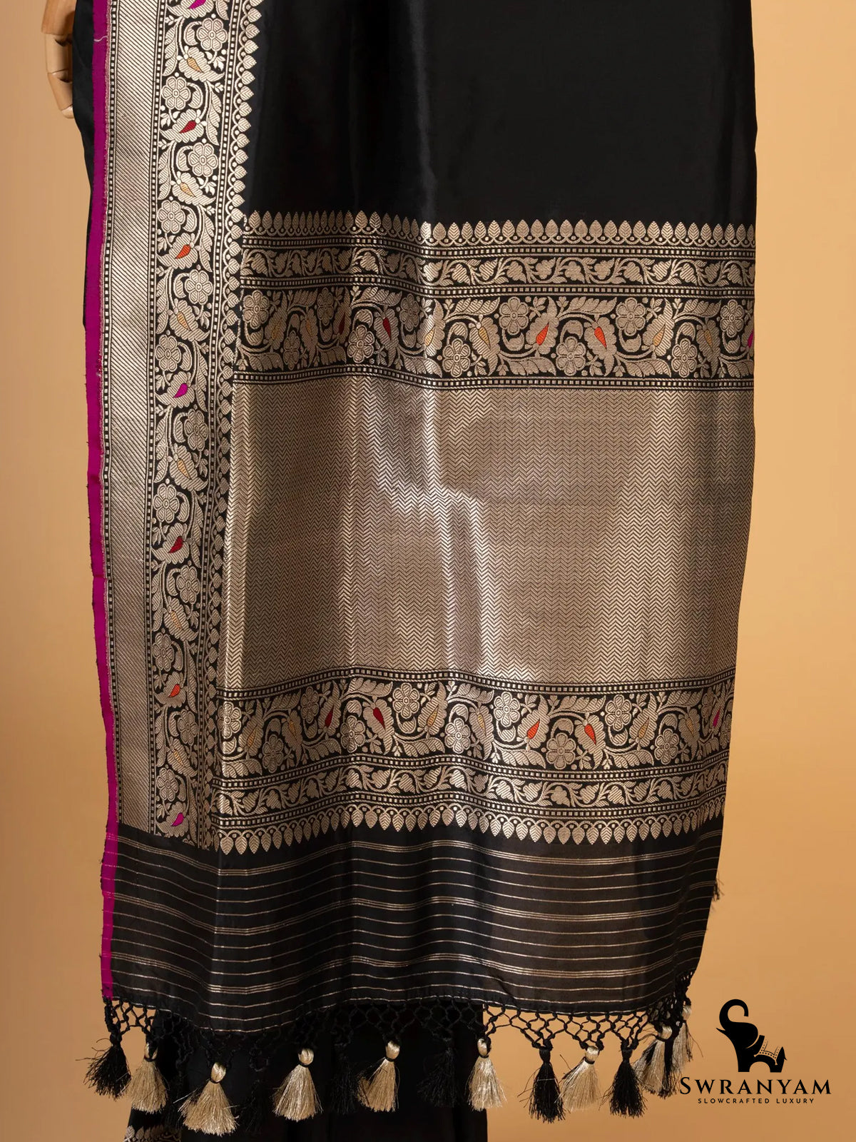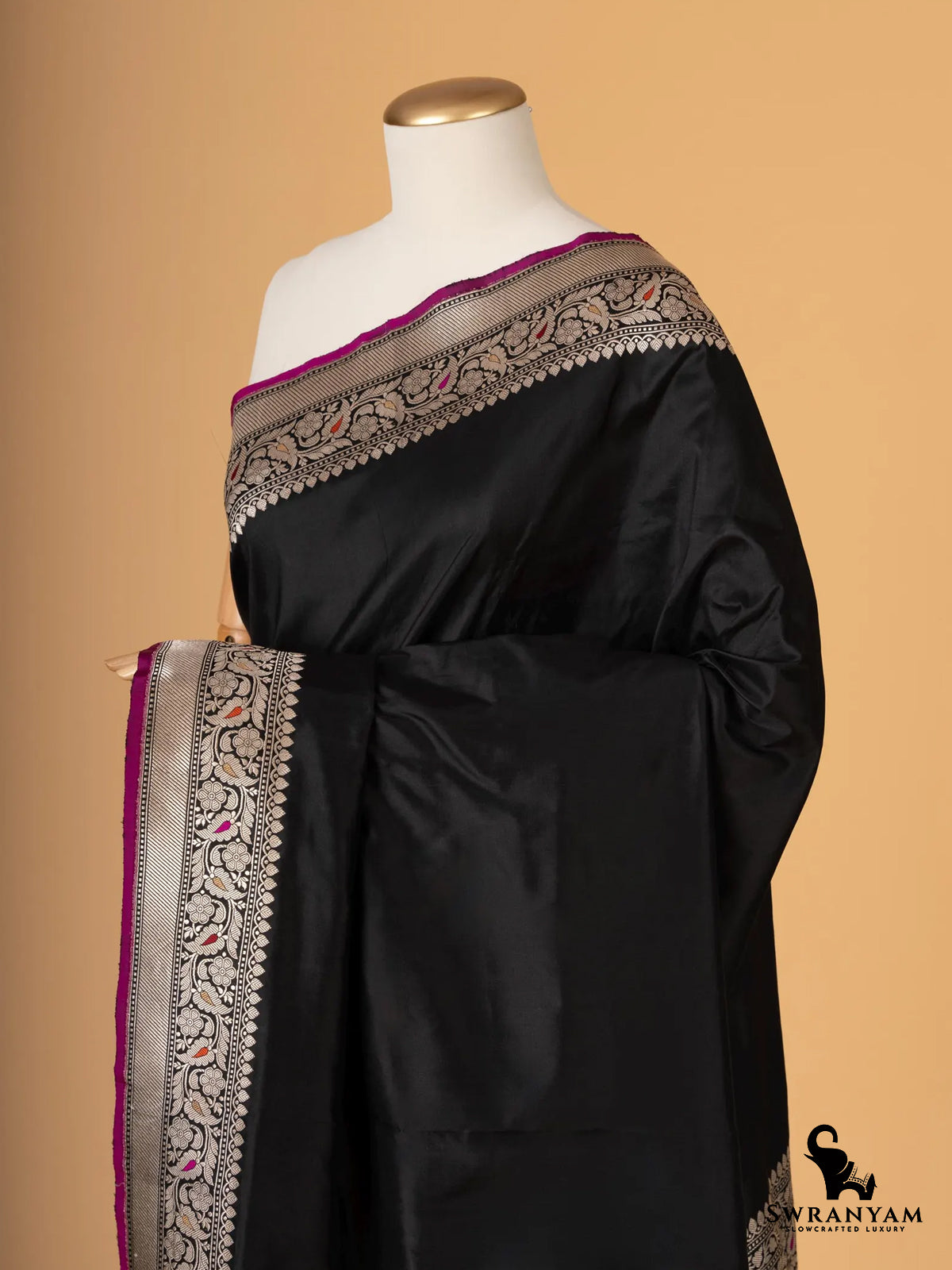 Pure Katan Silk Banarasi Saree in Black with Magenta Zari Border
