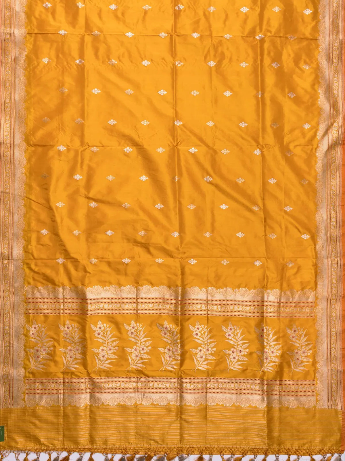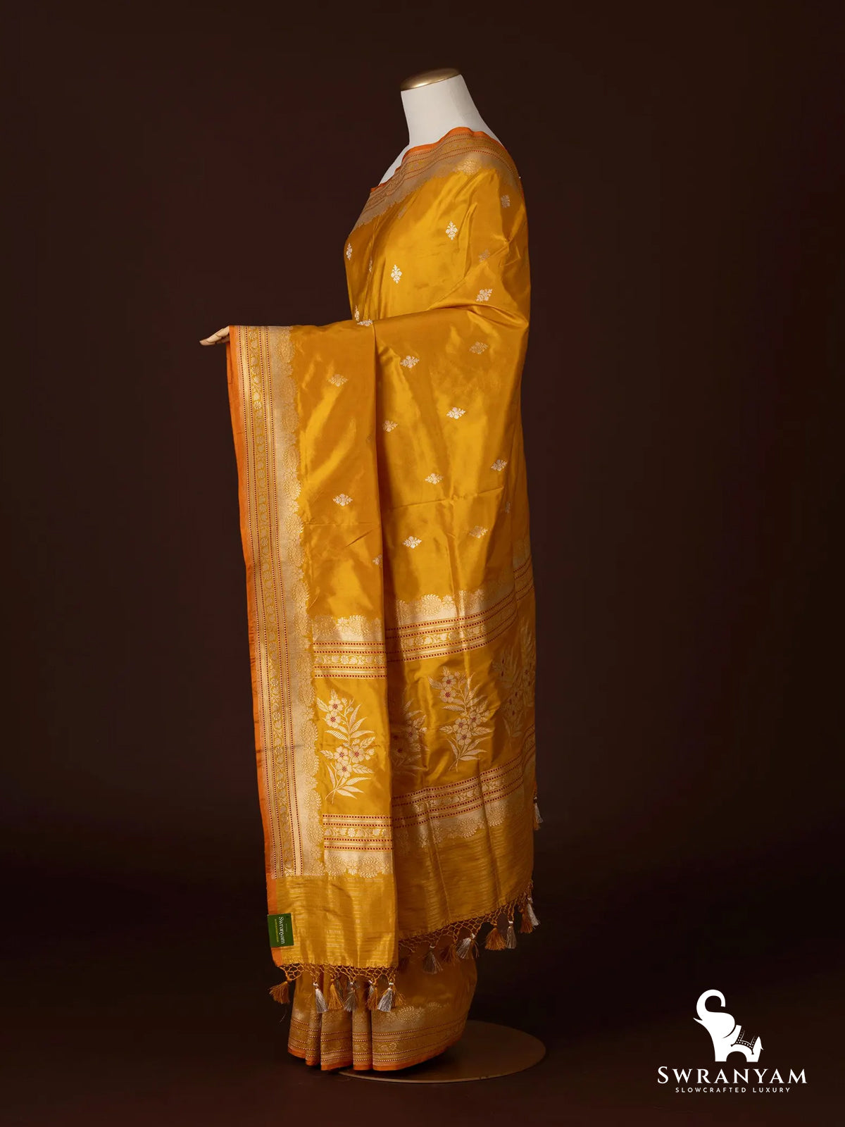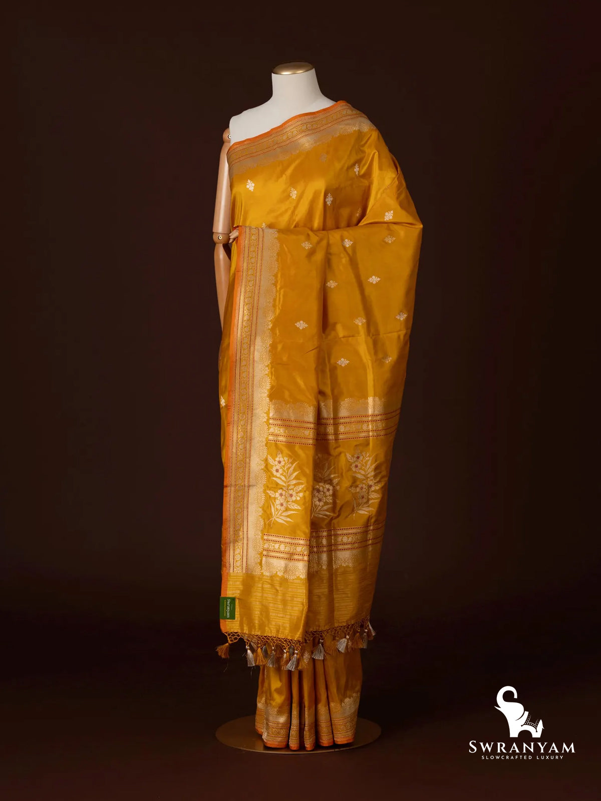 Pure Katan Silk Banarasi Saree in Mustard Yellow with Kadwa Floral Weave | Designer Elegance | Silk Mark Certified | Ready to Wear