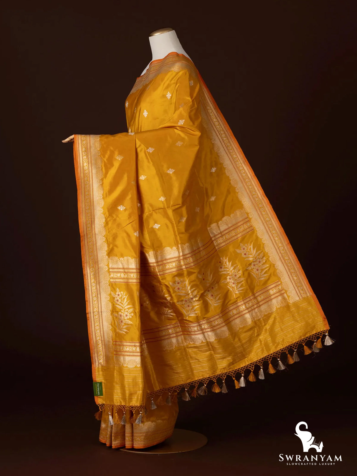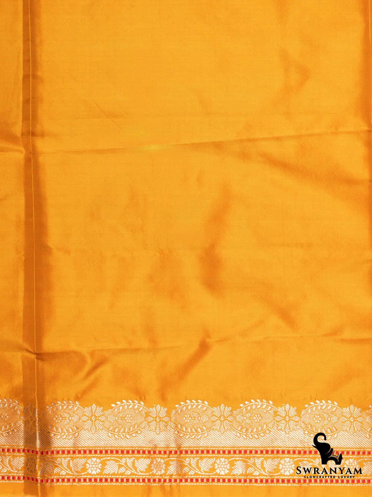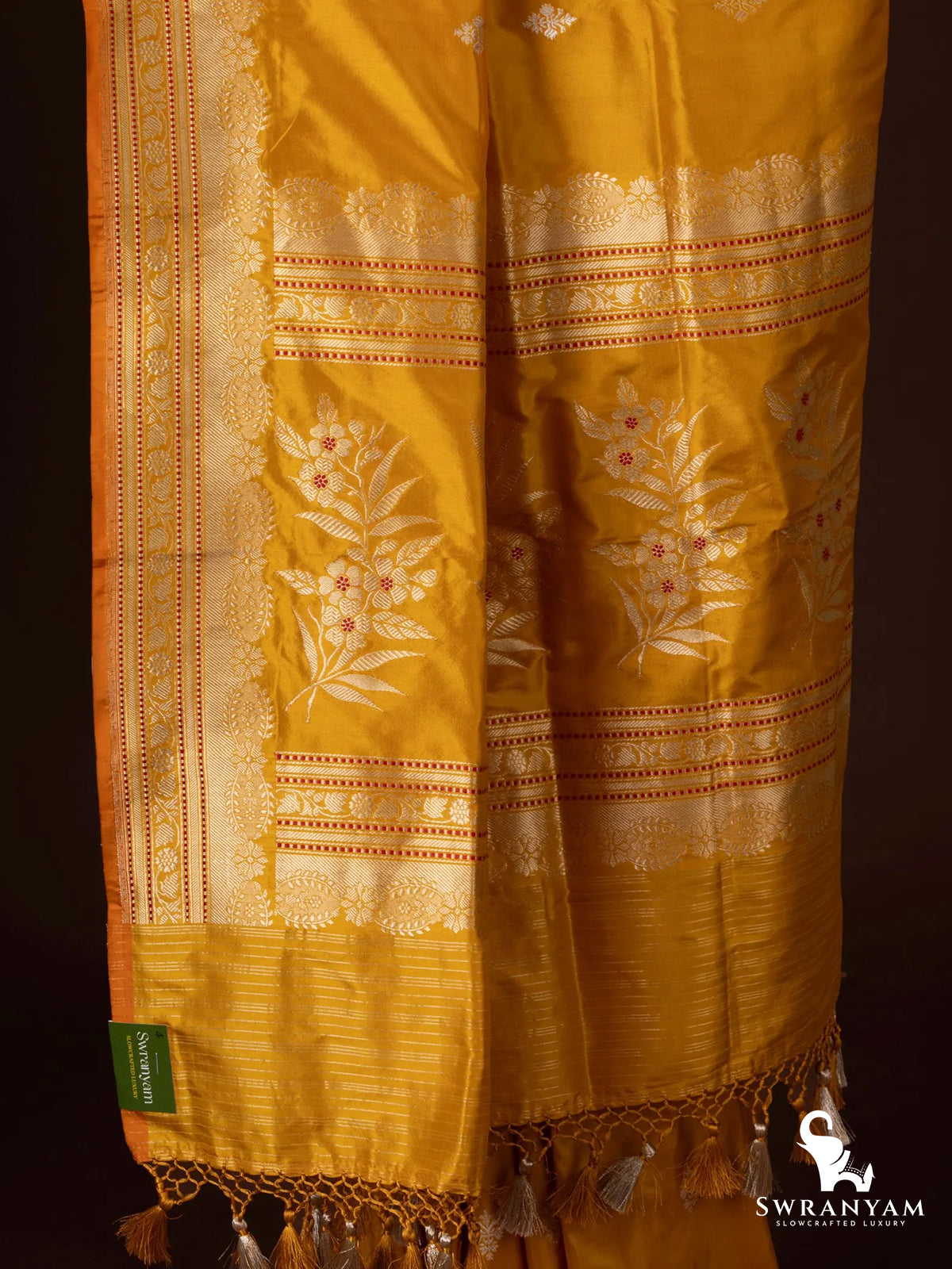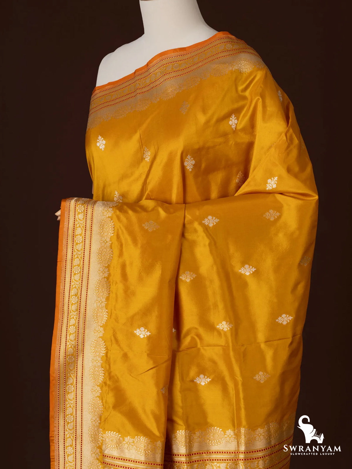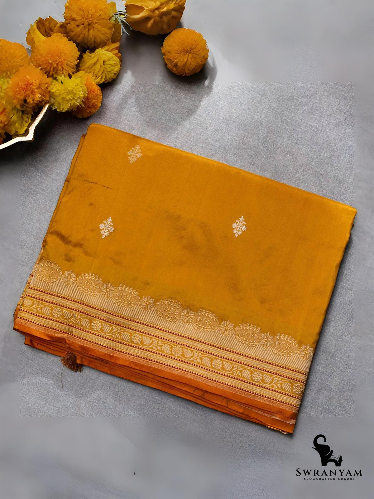 Pure Mustard Katan Silk Banarasi Saree with Kadwa Border