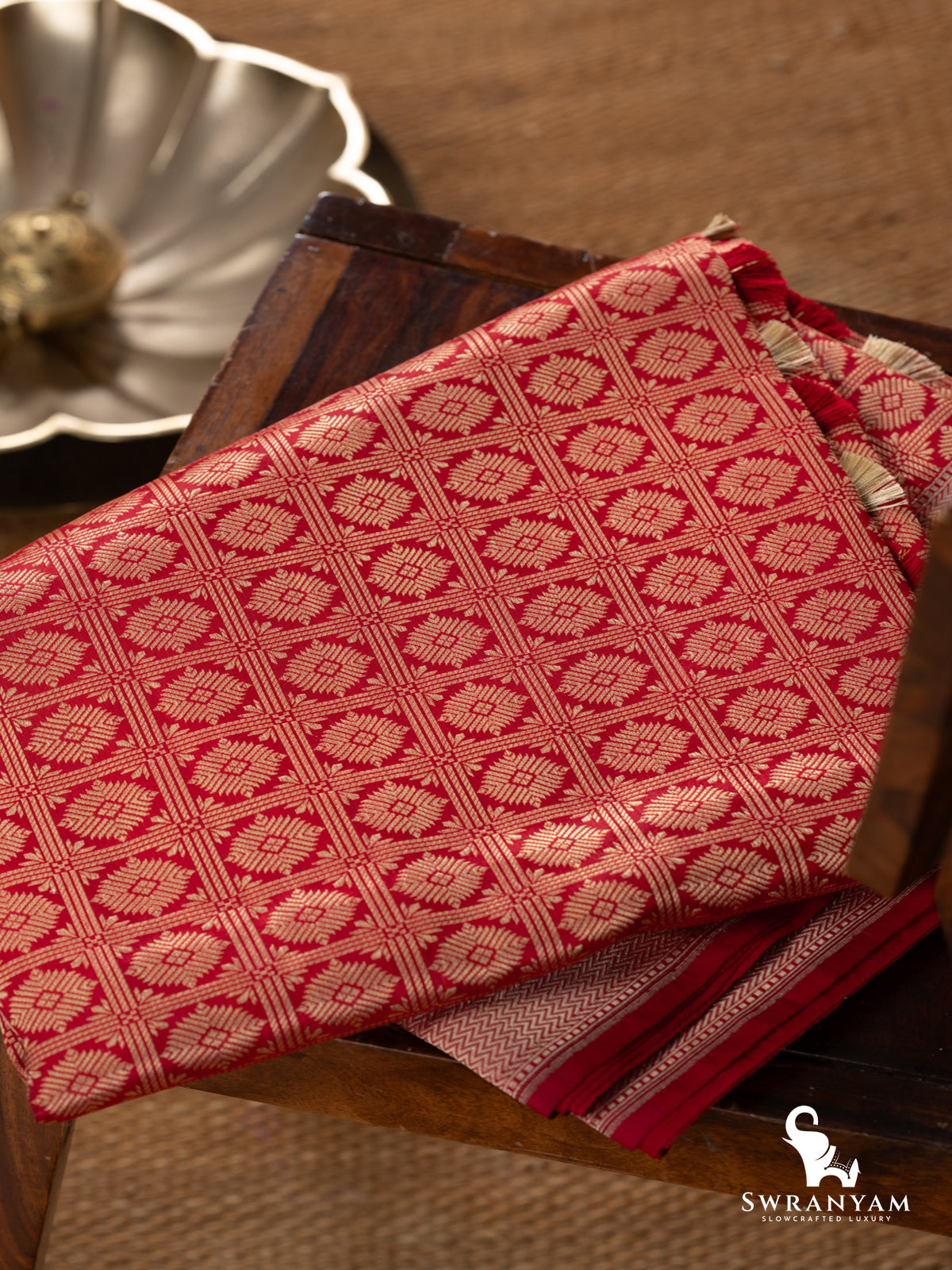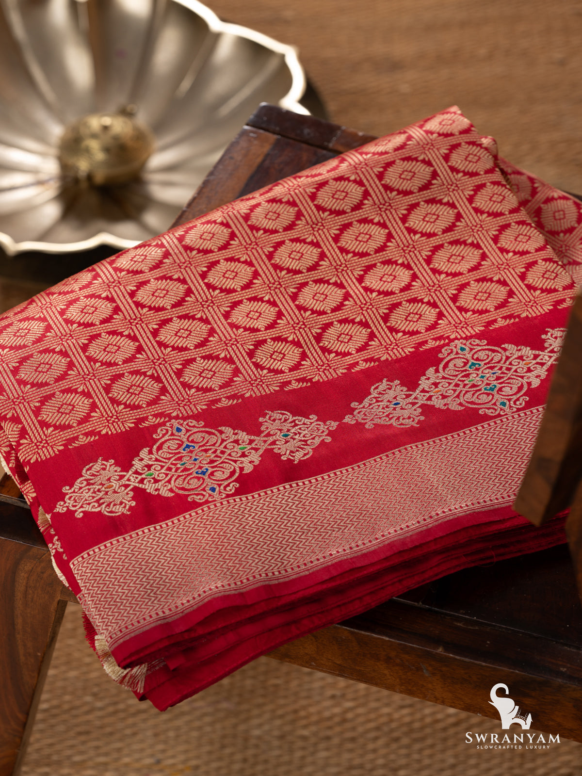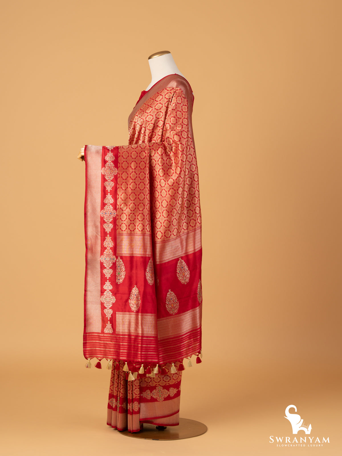 Pure Banarasi Silk Saree in Red with Gold Zari and Ornate Pallu