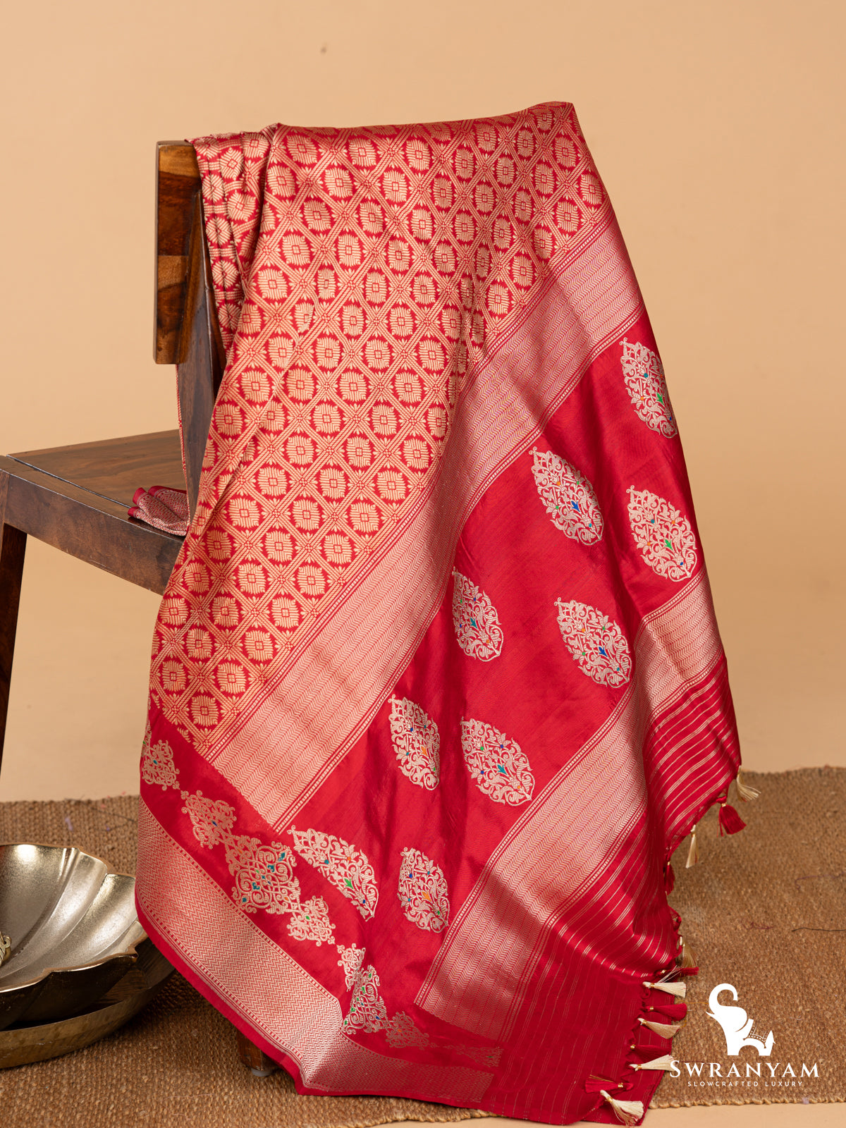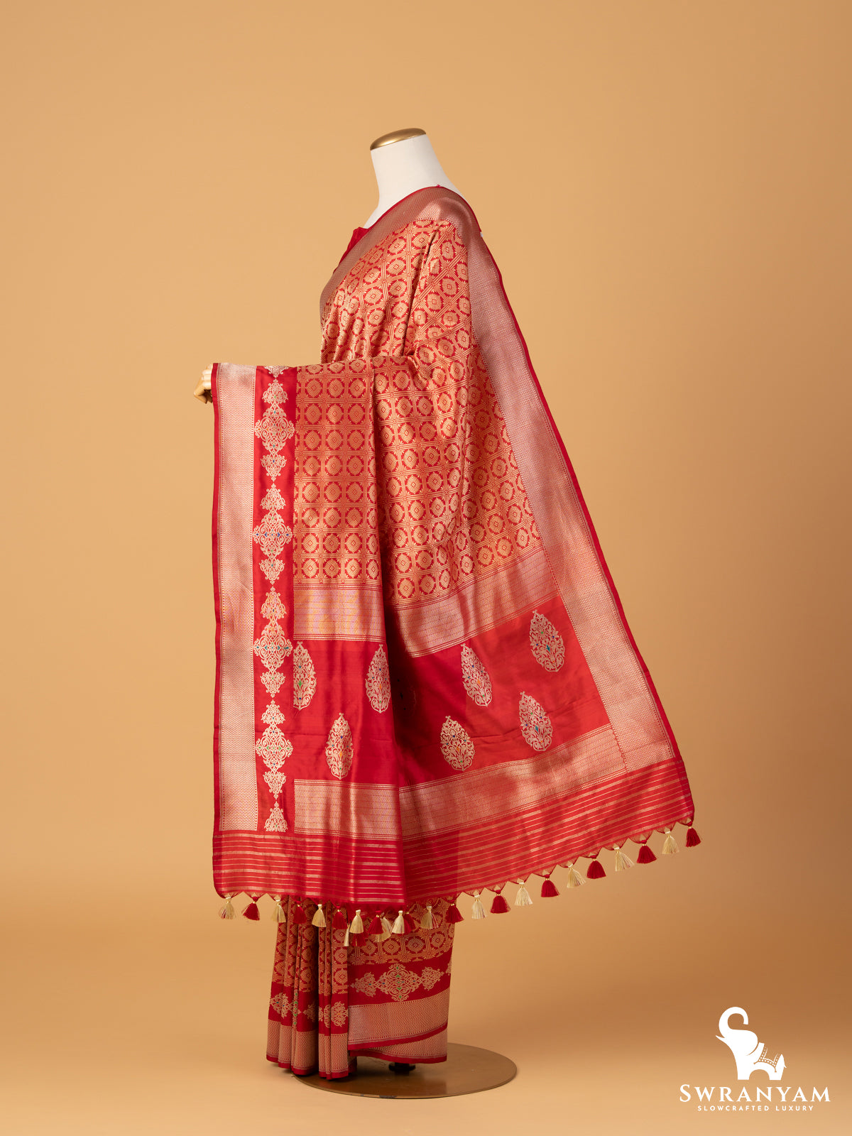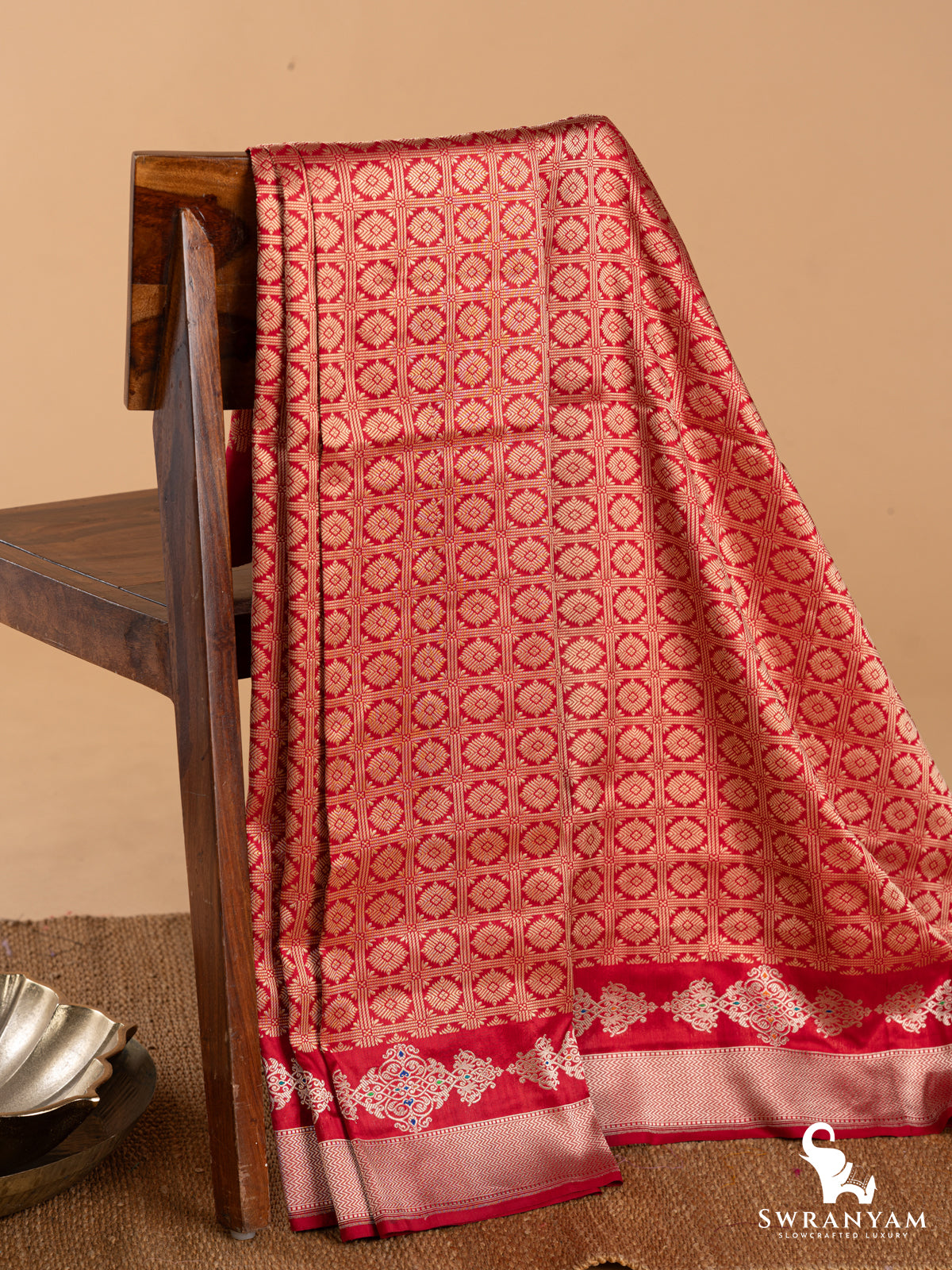 Pure Banarasi Silk Saree in Red with Gold Zari and Ornate Pallu