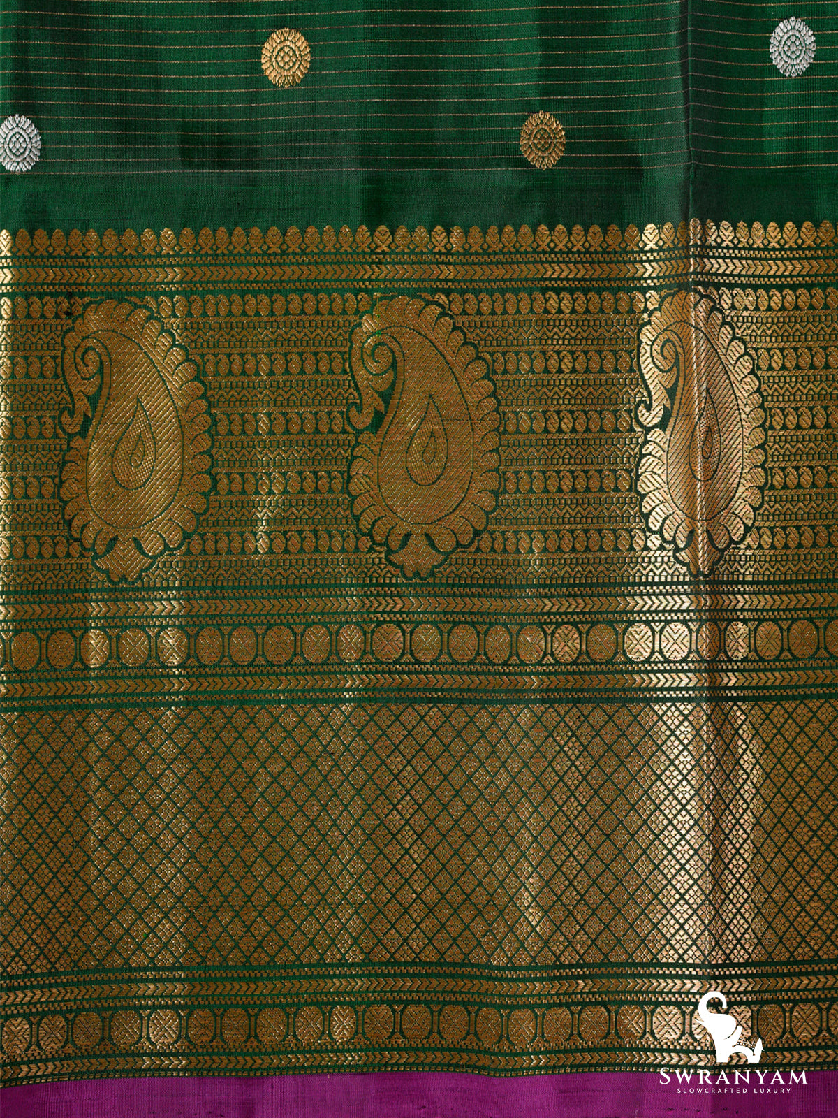 Saree Border Color: Green with Purple Piping