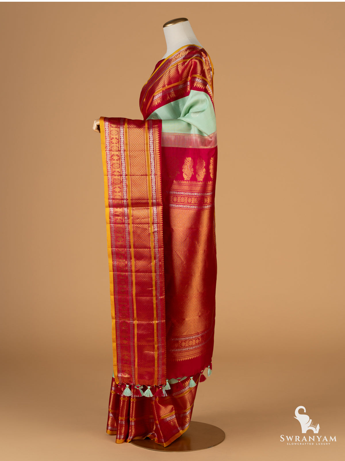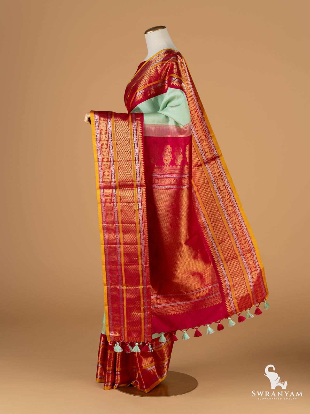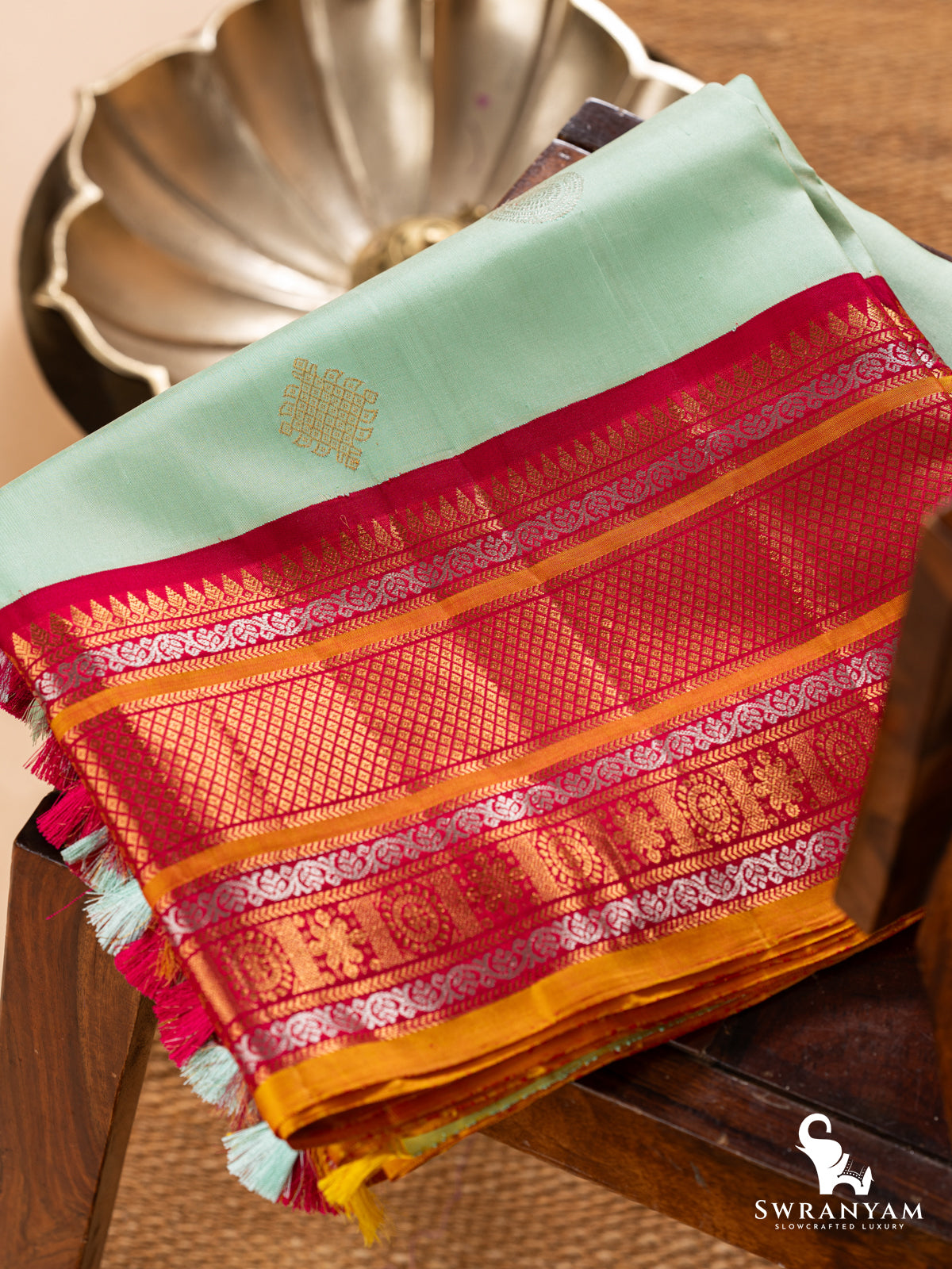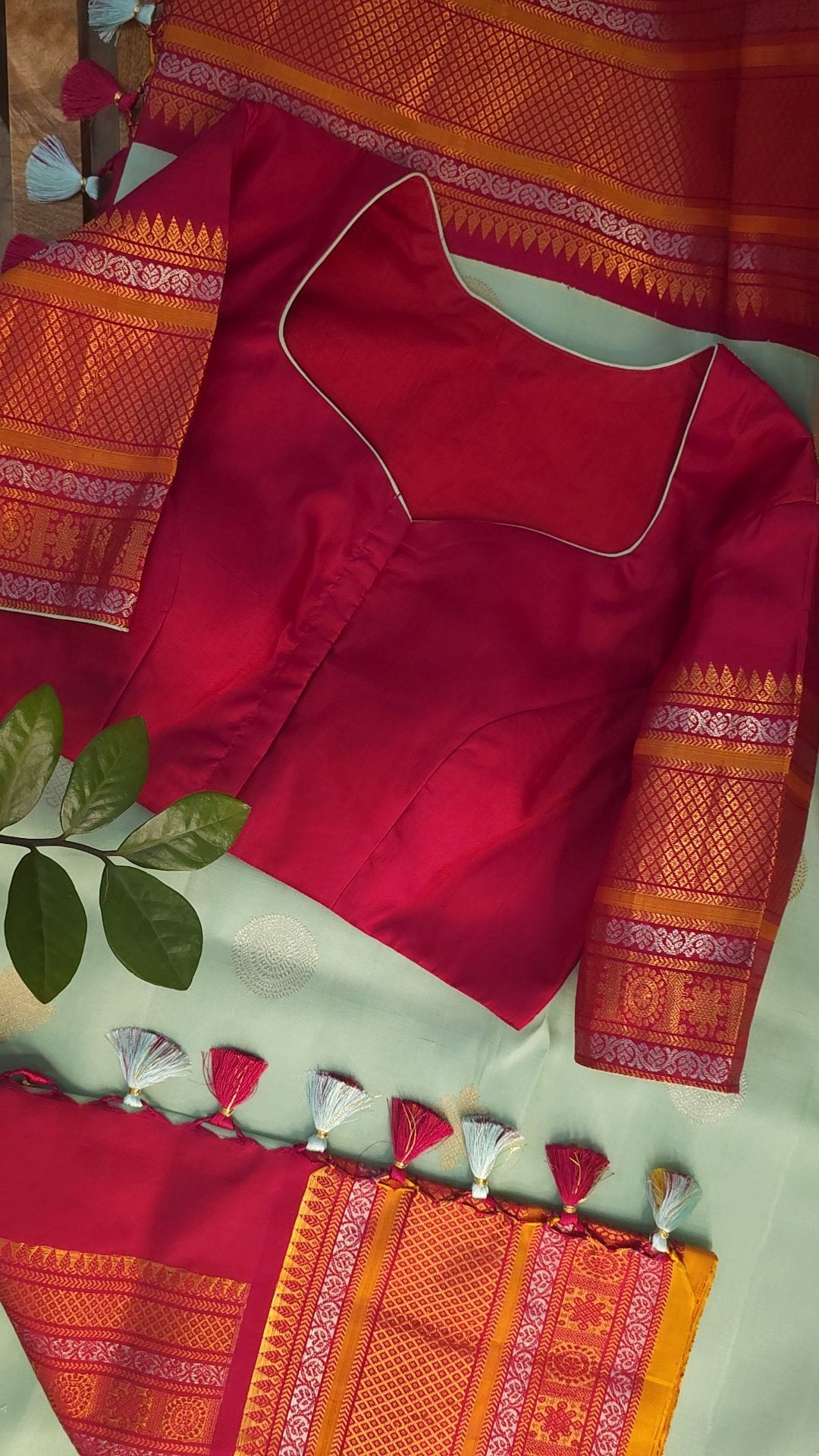 Handmade tassels adorn the pallu