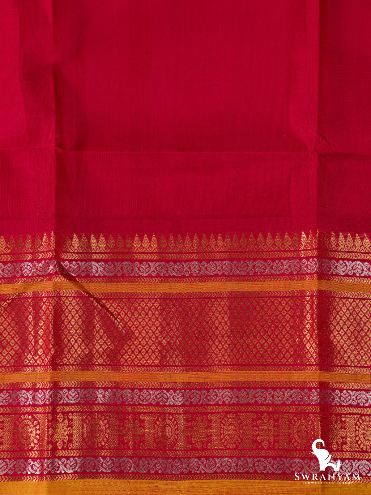 Each saree in our collection is Silk Mark Certified, assuring you of purity, authenticity, and premium quality. The saree comes with a matching stitched blouse in red silk, finished with a simple woven border – giving you the flexibility to style it your way.