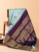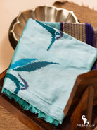 Kanjivaram silk Ikat Mint Blue and Purple Birds motif handwoven Saree