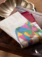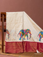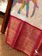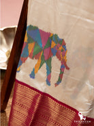 Kanjivaram silk Ikat White and Pink elephant design handwoven Saree