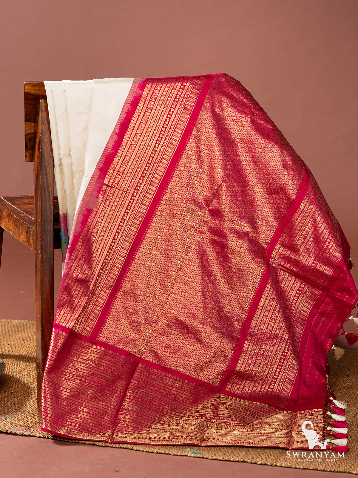 Each saree in our collection is Silk Mark Certified, guaranteeing authenticity and quality you can trust. Plus, the saree comes with a matching unstitched blouse in pink, thoughtfully designed with a simple woven border – giving you creative freedom to tailor it just how you like.