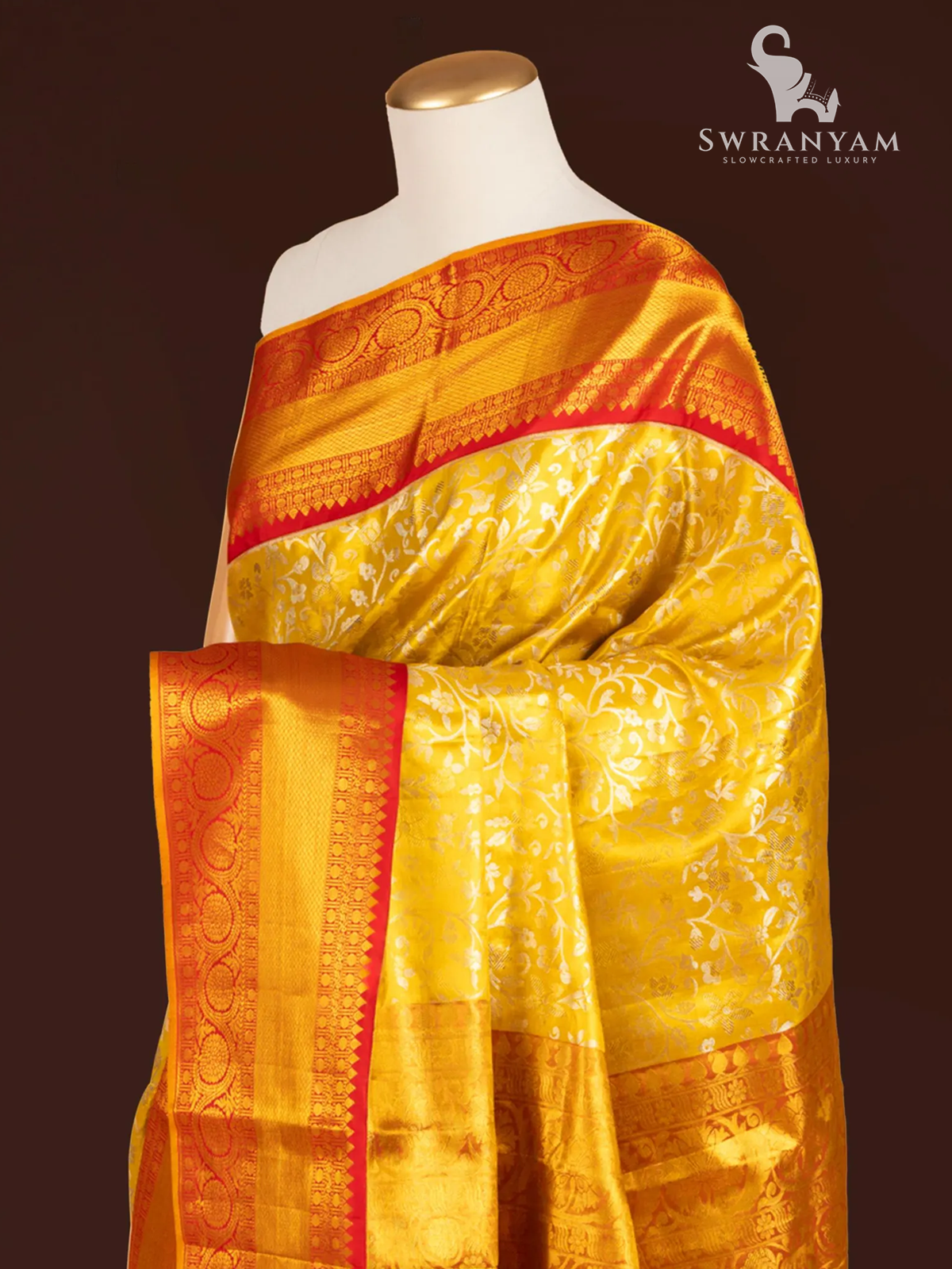 ◆ Elegant floral weave in vibrant mustard yellow