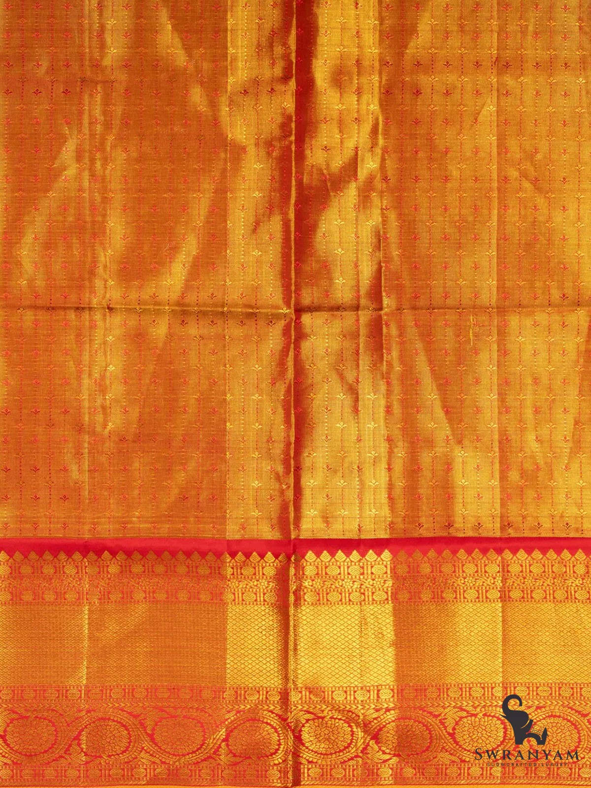 Pure Golden yellow Red border Kanjivaram Korvai silk Saree