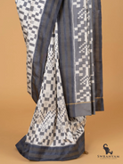 Pochampally Silk Ikkat Gray and White Weft Saree with Dark Gray Border