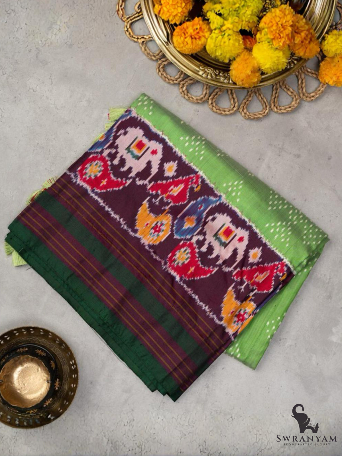 ◆ Intricate handwoven elephant motifs for a festive, regal appeal