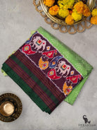 Pochampally Silk Ikkat Green and Maroon Saree with Elephant Motifs and Self Borders