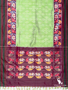 Celebrate heritage with a burst of festive charm – this Green and Maroon Pure Ikkat Silk Saree is a striking fusion of artistry and tradition. The light green body is adorned with subtle white dotted ikkat patterns, while the maroon pallu takes center stage with intricately handwoven multicolor elephant motifs, adding a regal yet playful touch. Finished with self,woven green and maroon borders and handcrafted green silk tassels, it’s the perfect saree for weddings, cultural celebrations, and joyous gatherings.