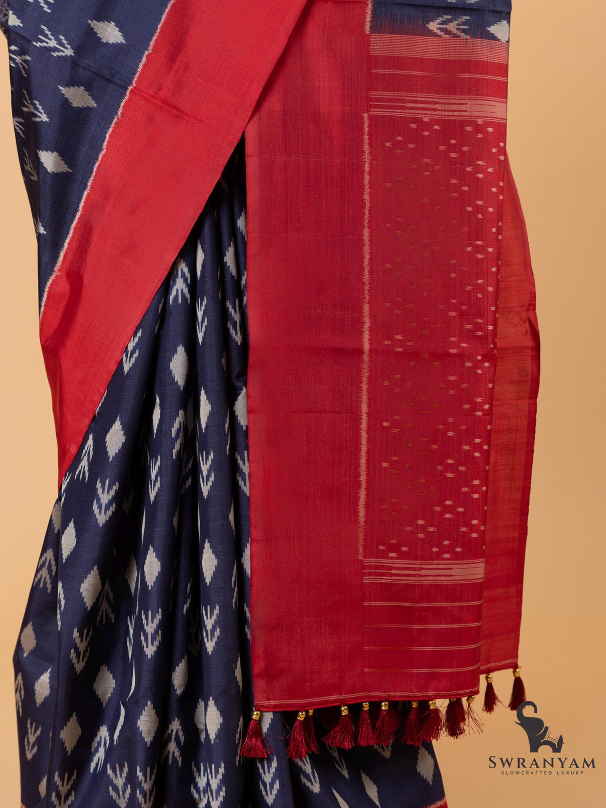 Saree Pallu: Woven finish with handmade tassels