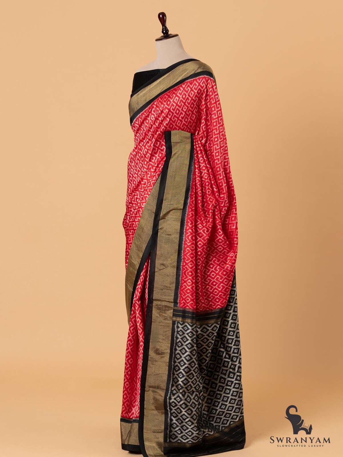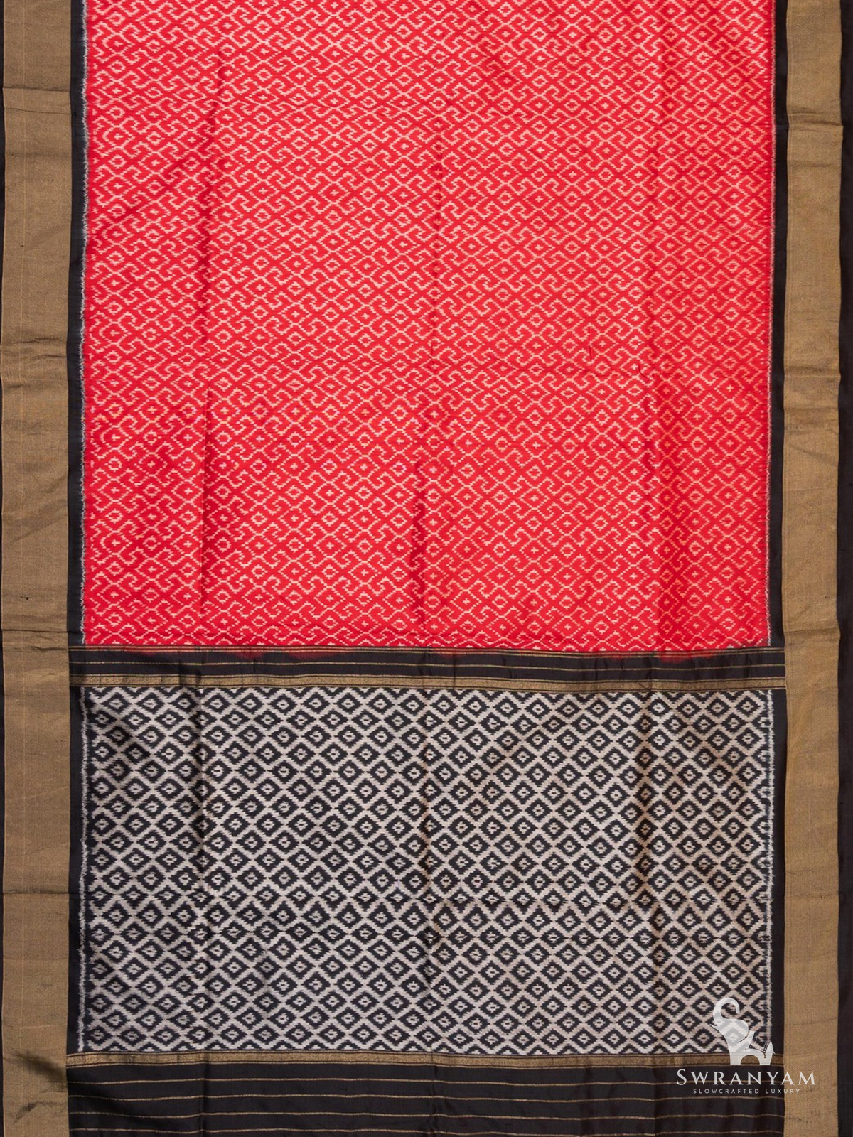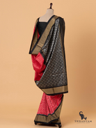 Pure Ikkat Silk Saree in Red with Silver Weft and Black Border, Lightweight Elegance, Handwoven, Silk Mark Certified and Ready to Wear