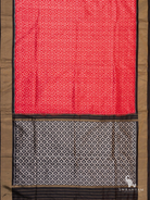 Pochampally Silk Ikkat Red Saree with Silver Weft and Black Border