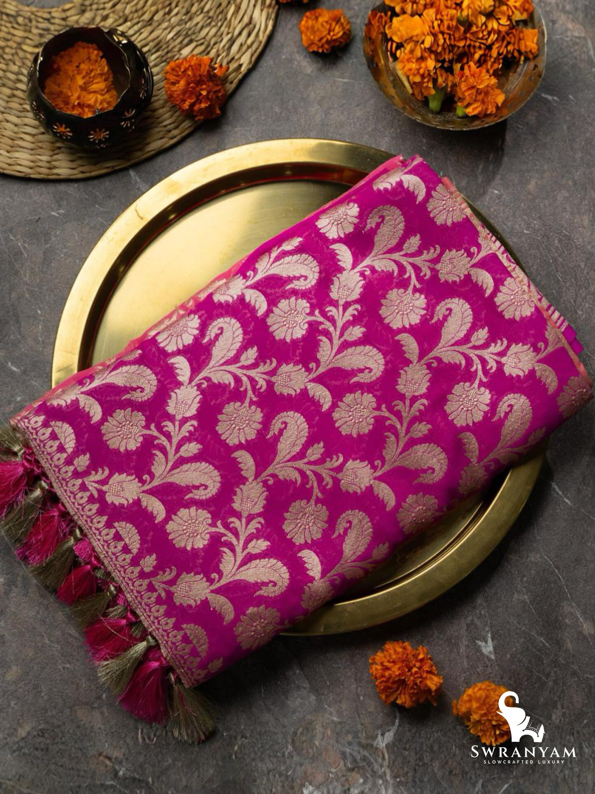 Swranyam is rooted in a love for Indian craftsmanship, blending tradition with contemporary design for a global audience. We curate thoughtfully designed apparel, jewelry, accessories, décor, and handcrafted essentials that tell stories beyond trends.